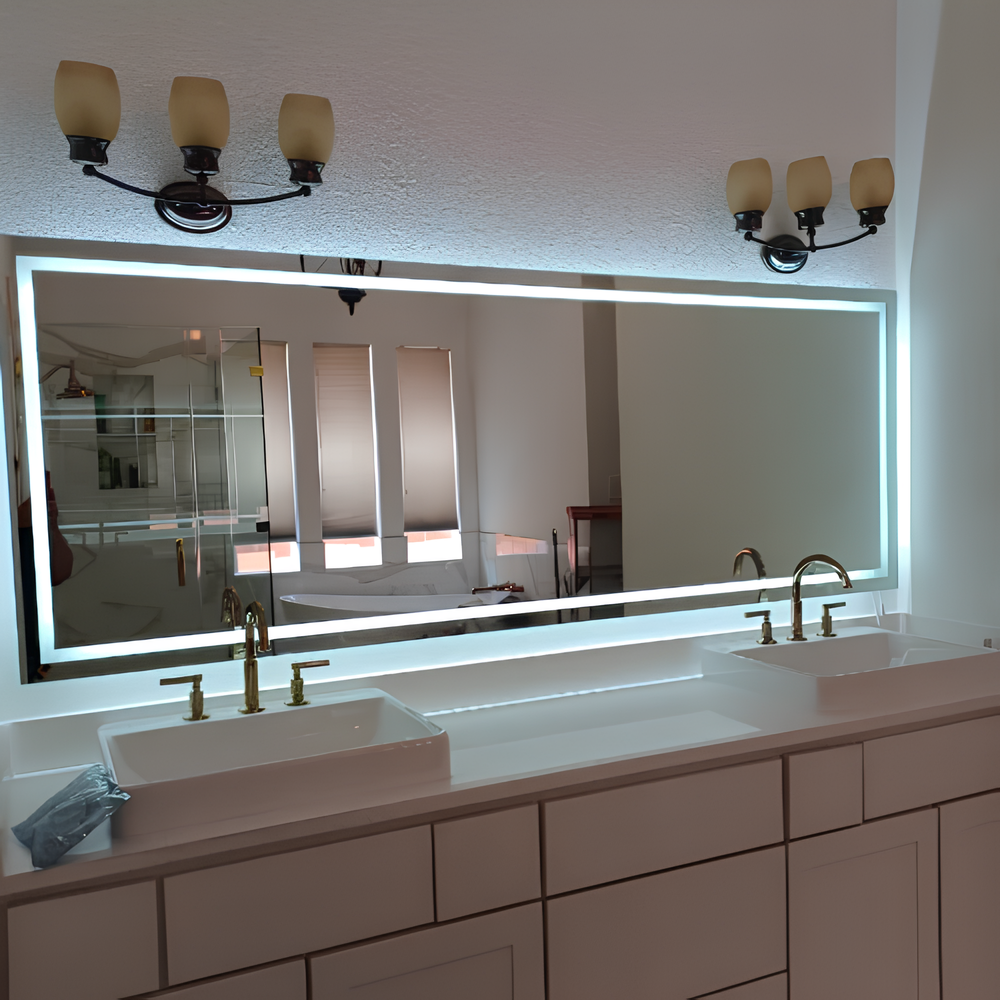 Specifically designed to fit above sinks and vanities, these mirrors can be customized to any size and shape, often featuring anti-fog technology.